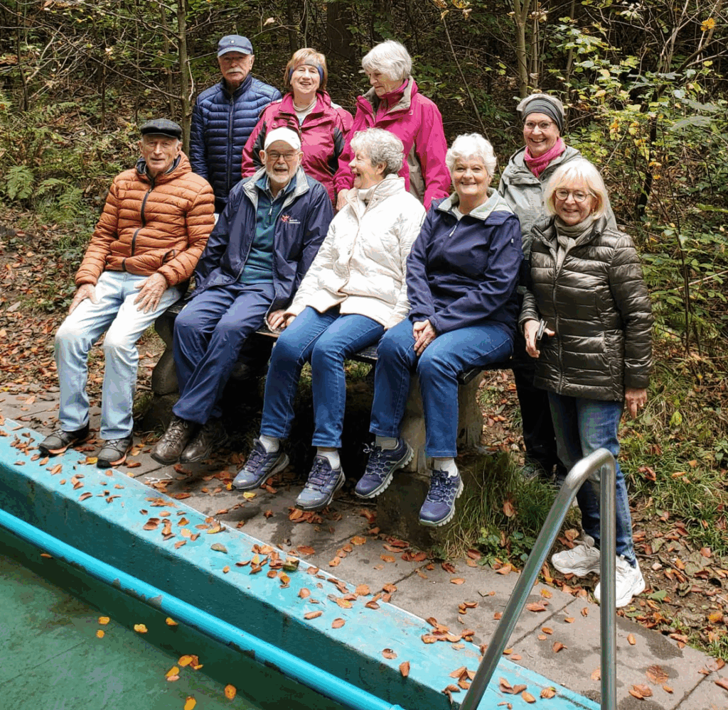 Die „Fitte“-Gruppe unter der Leitung von Katharina hatte rund zwölf Kilometer vor sich. Vom Schloss Freudenberg führte die Route durch herbstlich verfärbte Weinberge und Obstwiesen mit Blick über das Rheintal. Es ging „nauf und nunner“, teils mit kräftigen Anstiegen. Weiter führte der Weg durch das idyllische Lippbachtal, wo der gleichnamige Bach die Wander:innen begleitete. Zum Abschluss wagten einige Mutige an der Schutzhütte des Wiesbadener Kneipp-Vereins einen erfrischenden Kneippgang – eine willkommene Abkühlung für die plattgelaufenen Füße.