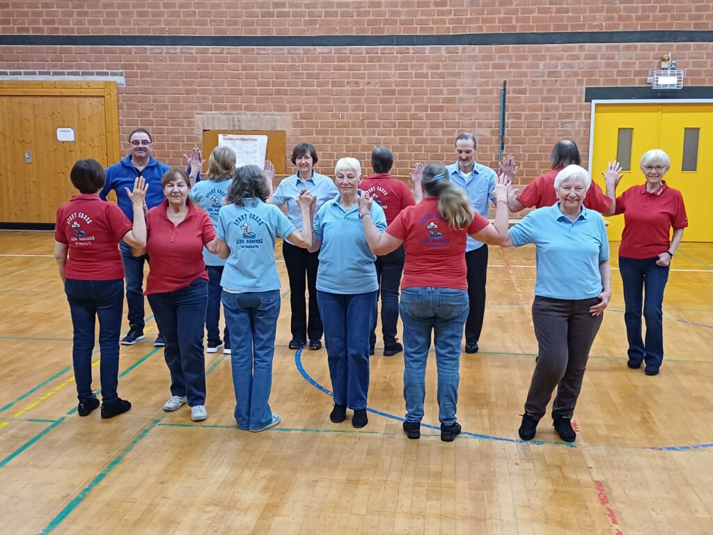 Die aus Amerika stammende Tanzform Line Dance, die vor einigen Jahren zu uns kam, erfreut sich wachsender Beliebtheit. Es gibt nun eine feste Gruppe, die regelmäßig trainiert, nachdem Line Dance einige Zeit als Kurs bei der TuS angeboten wurde.